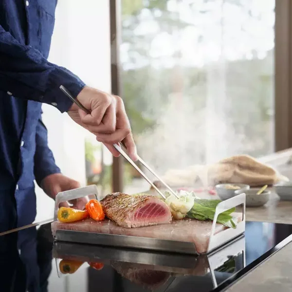 - Auf dem Salzblock können Sie Ihre Speisen direkt am Tisch zubereiten, da er heiss bleibt und gleichzeitig zu einem Blickfang für Ihre Gäste wird.